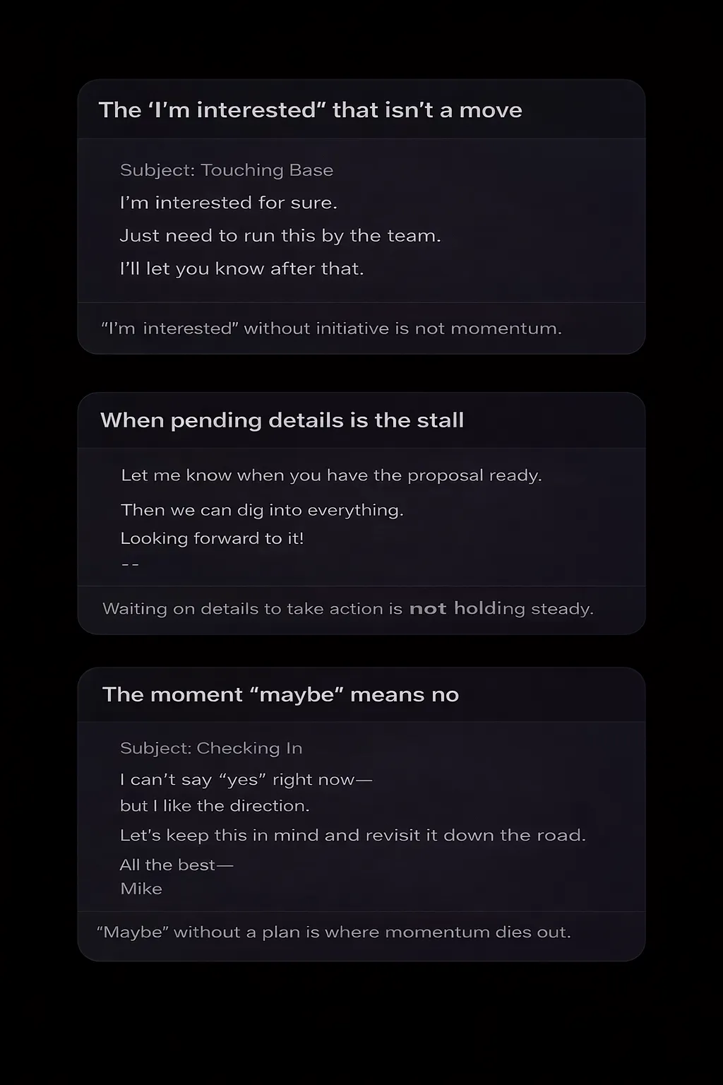 The polite drift. The soft delays. The “circle back.” The decision already happened — you just didn’t see it.